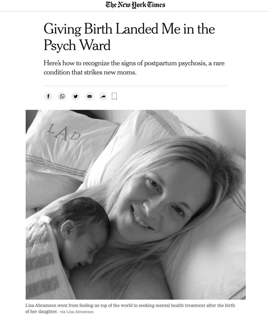 New York Times Personal Essay: Giving Birth Landed Me In the Psych Ward